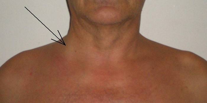 Затем при прогрессировании это образование увеличивается при плаче, натуживании и других состояниях, увеличивающих давление в грудной полости и затрудняющих нормальный венозный приток крови через подключичные и верхние полые вены к сердцу.